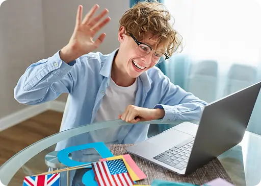 Ideal für diejenigen, die von zu Hause aus lernen möchten oder einfach keine Zeit für den Weg zur Schule aufwenden möchten. Wir arbeiten auch mit Schülern aus anderen Regionen und sogar Ländern zusammen. Wir kommunizieren über beliebte Plattformen und stellen den Schülern alle notwendigen interaktiven Materialien zur Verfügung.